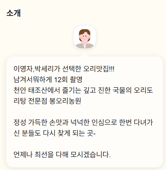 - 지역에서 오리 전문점으로 20년 이상 영업