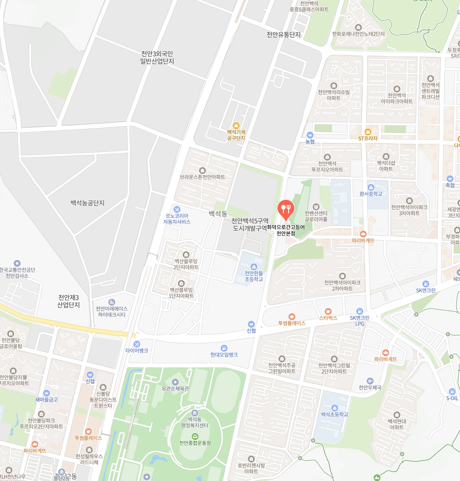 - 주소: 충청남도 천안시 서북구 한들2로 46-5 (백석동 100번지)
