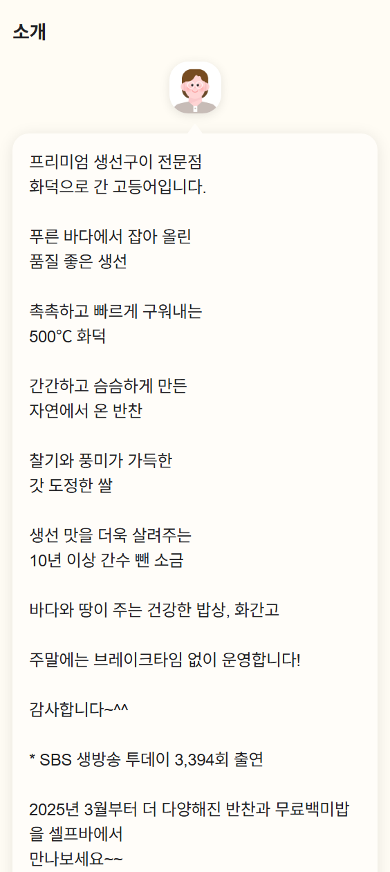 | 🍚 추천 조합 | 고등어구이 + 간장게장 + 누룽지 |