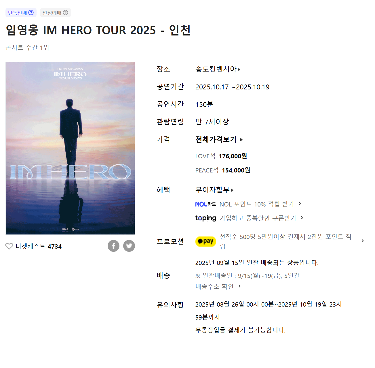 임영웅 전국 투어 콘서트 2025 - 인천 (송도컨벤시아) 티켓팅 성공후기