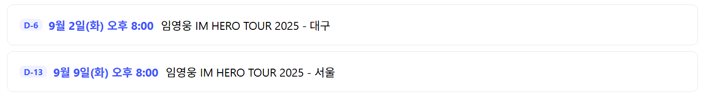 2025년 임영웅 전국투어 콘서트가 인천 송도컨벤시아에서 개최됩니다. 자세한 예매 일정 완벽가이드는 아래글을 참조해주세요. 임영웅 전국 투어콘서트 예매 일정 완벽 가이드(2025) IM HERO2025년