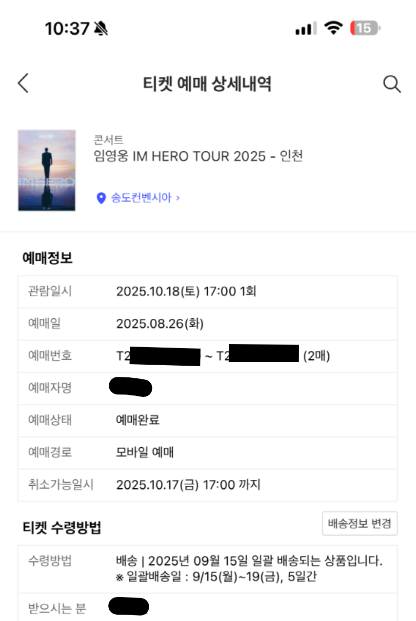 2025 임영웅 전국투어 콘서트 IM HERO 2025 - 인천 | 티켓팅 성공 후기 (송도컨벤시아 by NOL 인터파크 티켓)