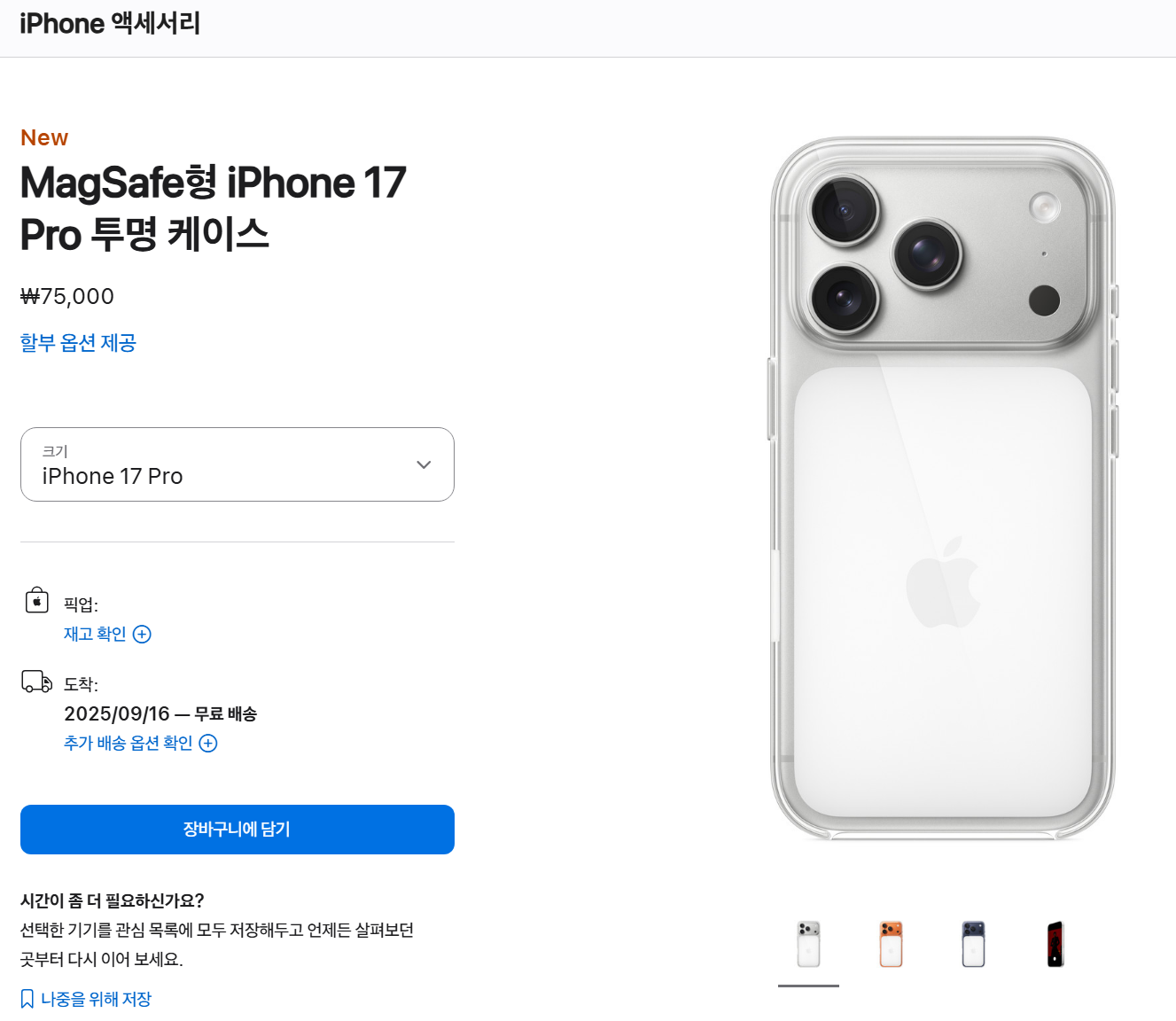 | 투명 케이스 | MagSafe 지원 | ₩75,000 |