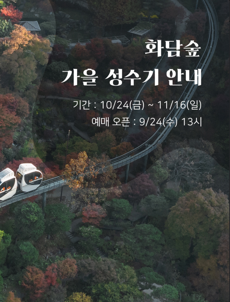 화담숲 예약하기 2025 최신 가이드! 온라인 예매 방법, 입장료, 모노레일 요금, 할인 혜택부터 가을 단풍 성수기(10/24~11/16) 운영시간과 환불 규정까지 한눈에 확인하세요.